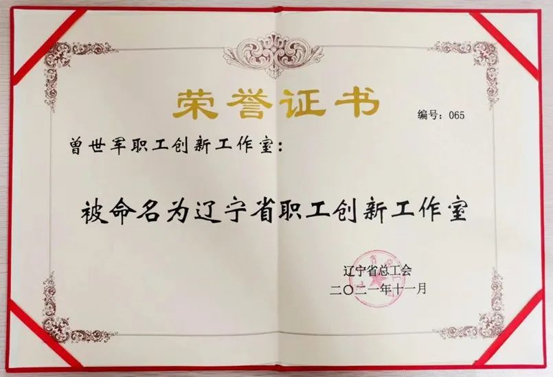 2022年6月14日,辽宁省总工会开展职工创新工作室的实地考察工作,我公司“曾世军职工创新工作室”被命名为辽宁省职工创新工作室。
